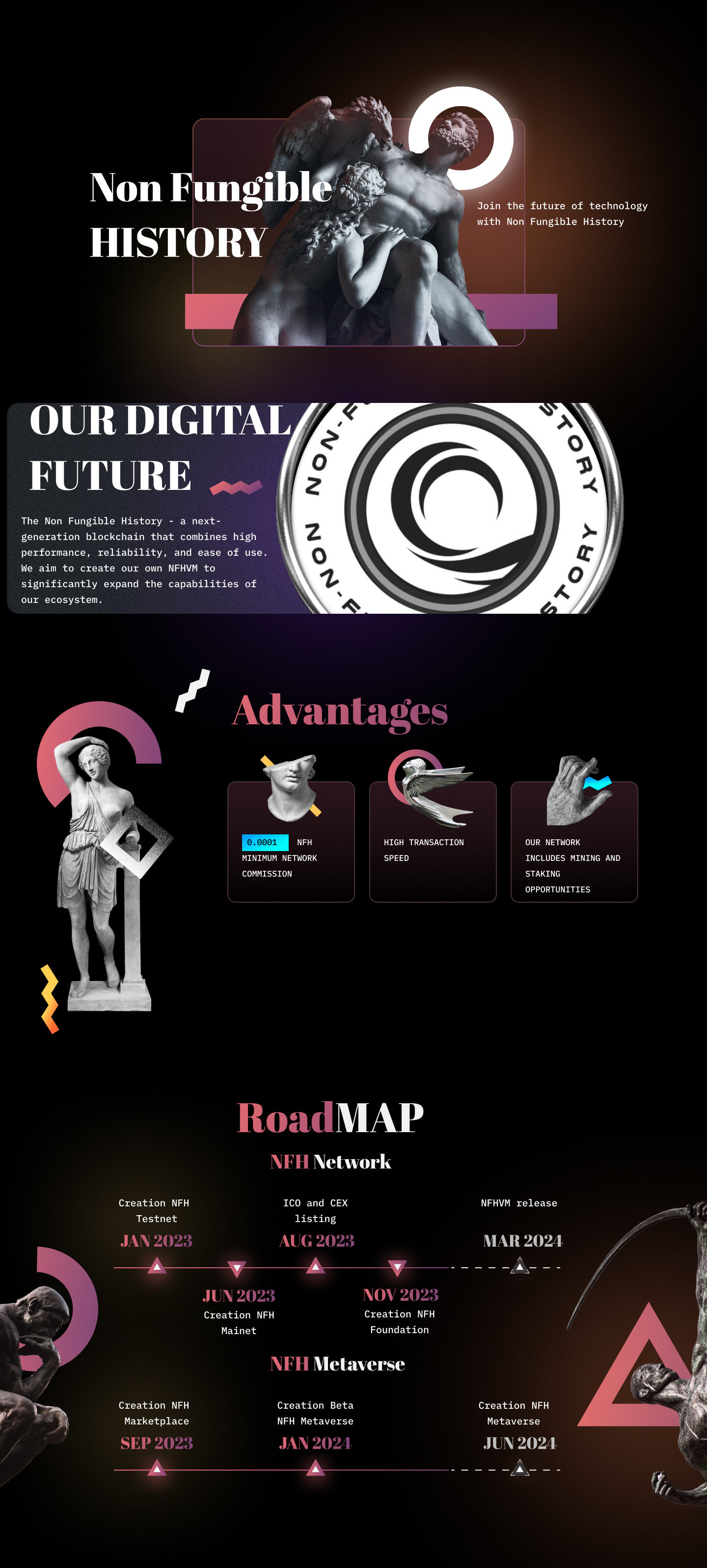Non Fungible History (NFH) - a next-gen blockchain with high performance, reliability, and user-friendly features. Developing NFHVM to enhance ecosystem capabilities.